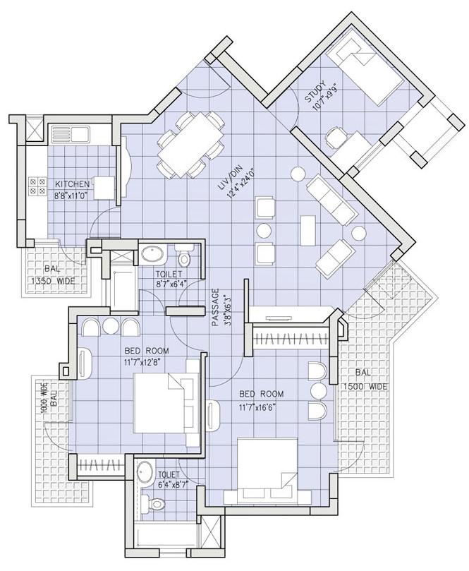 | 3 BHK + 3T + S.R. | 1920 | On Request |