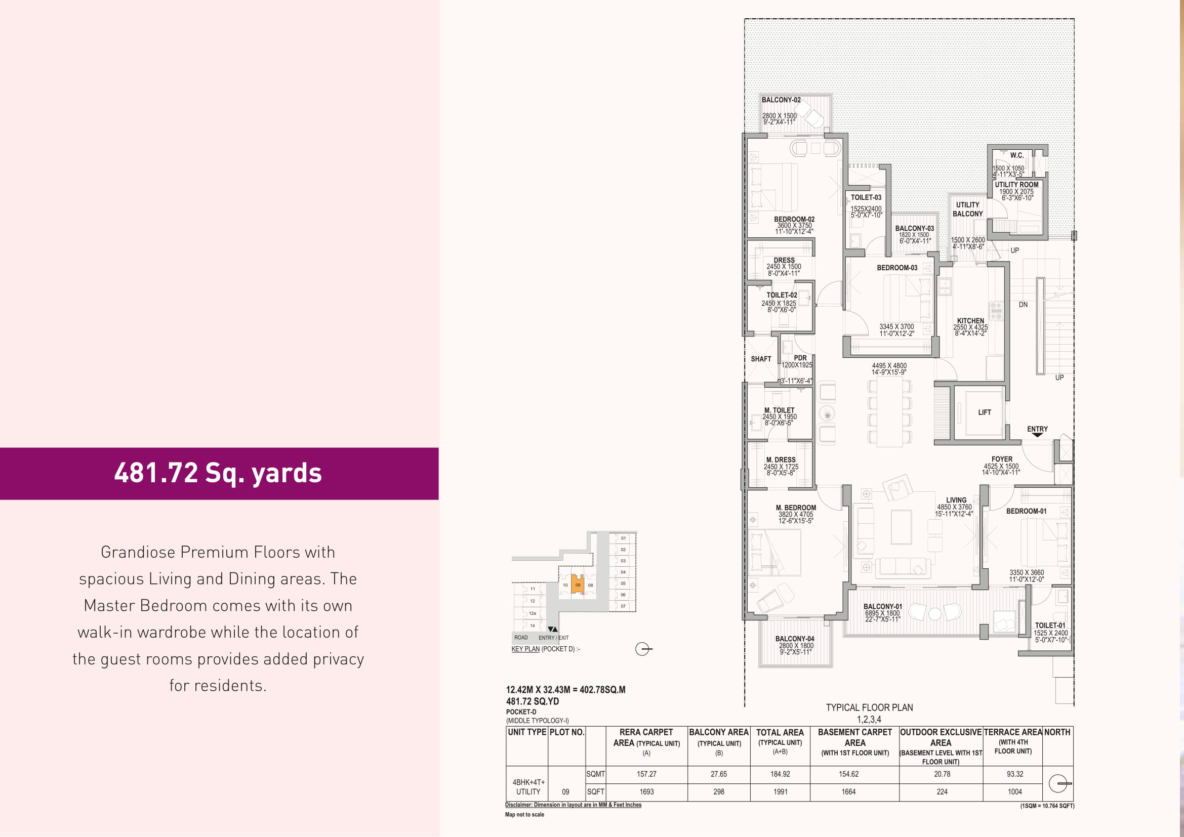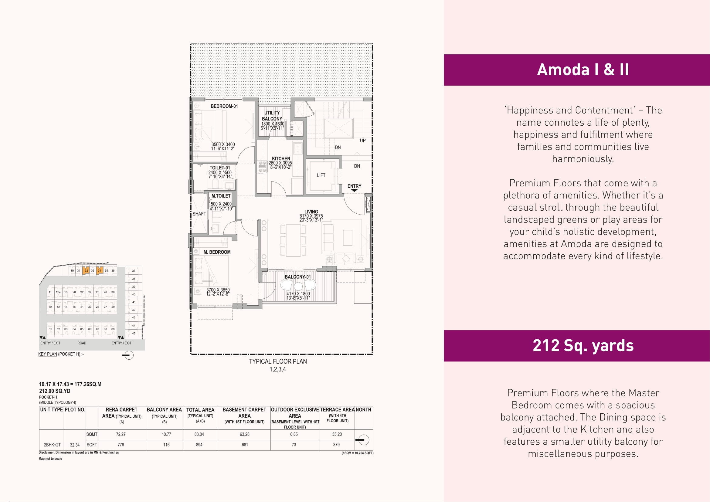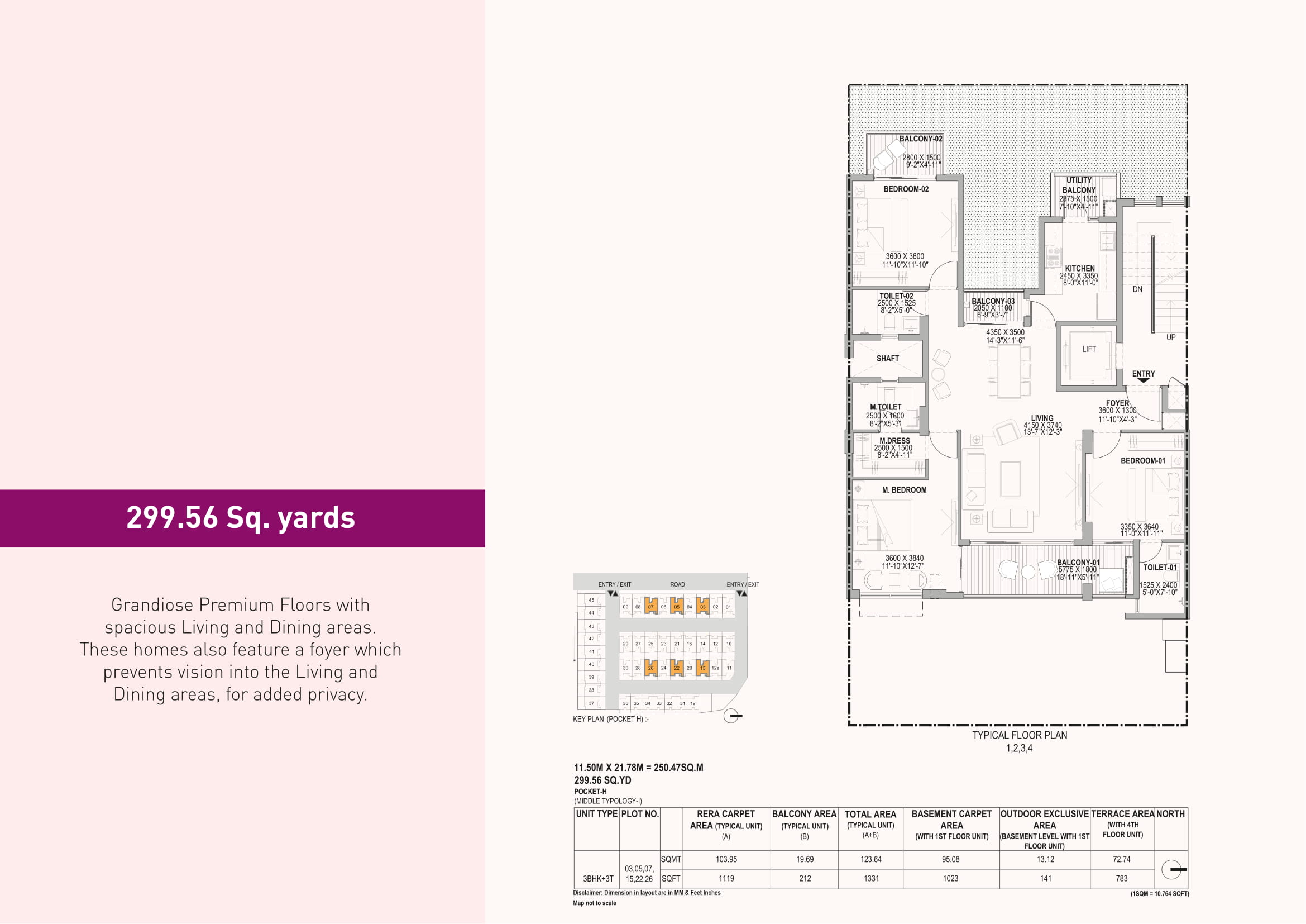 | 3 BHK + 3T (Basement) | 2332 – 2495 Sq.Ft. (216.70 – 231.79 Sq.Mt.) |