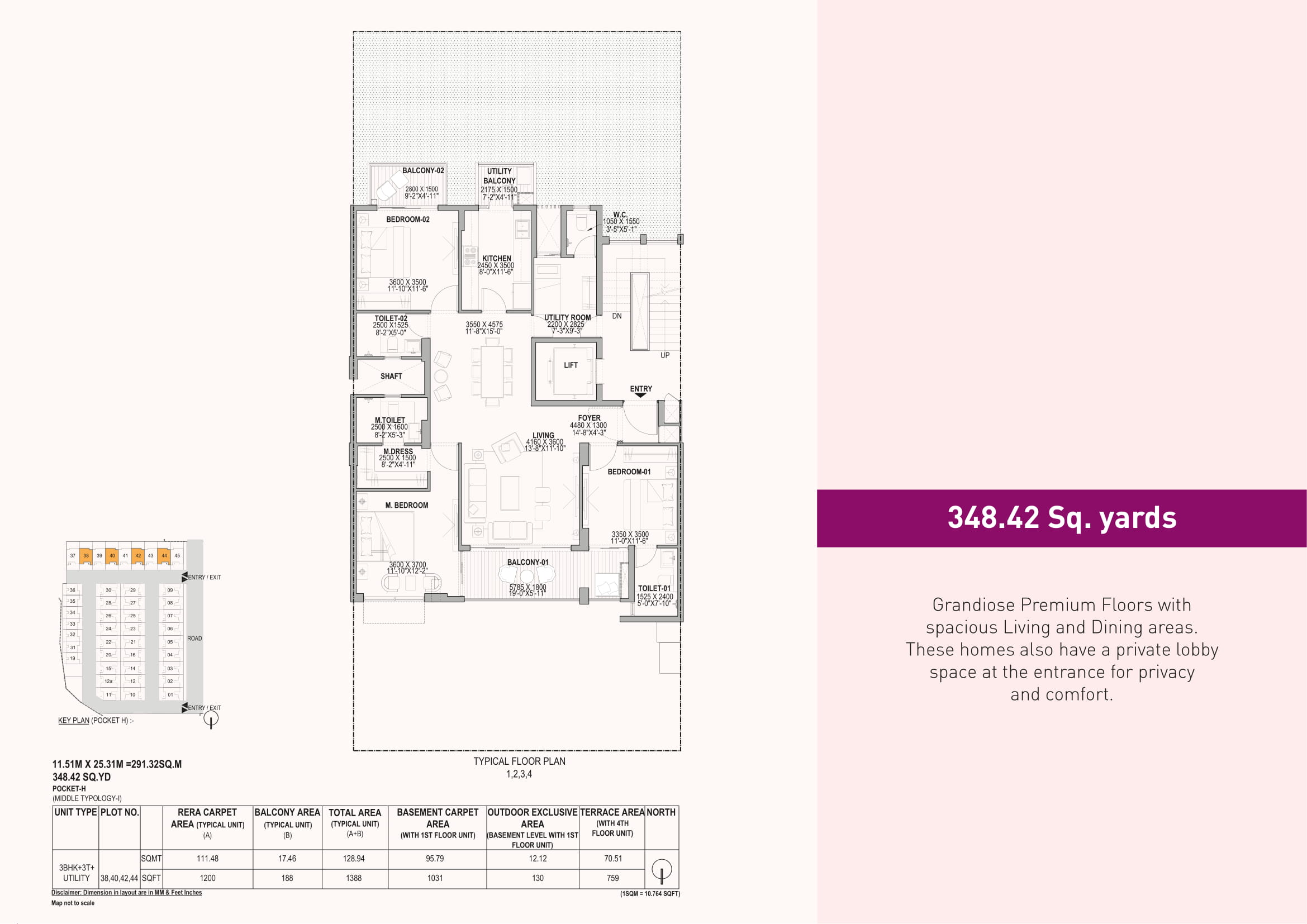 | 3 BHK + 3T + UTILITY | 1337– 1374 Sq.Ft. (124.12 – 127.64 Sq.Mt.) |