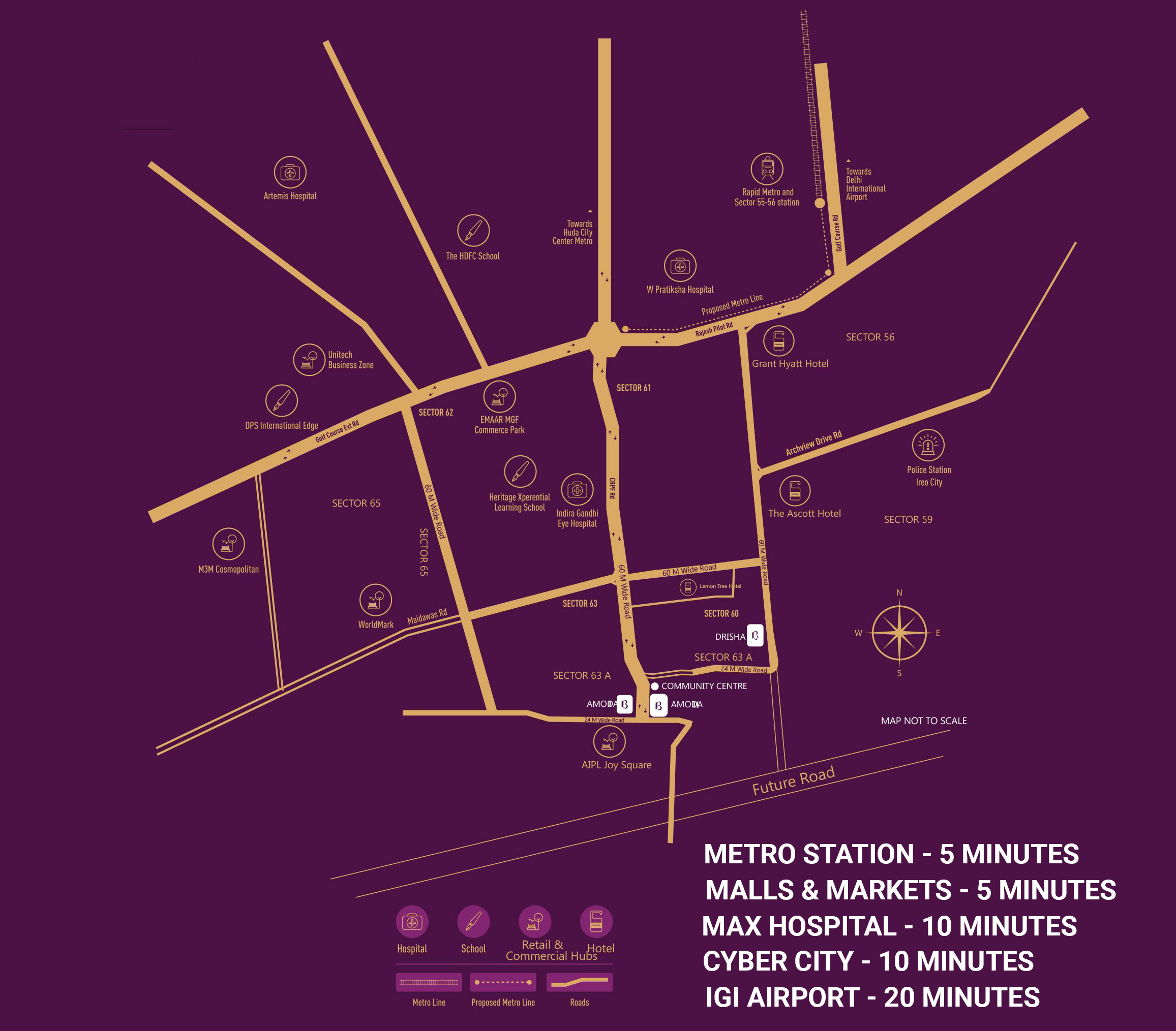 Drisha is a Sanskrit word meaning "mountain Lord," representing a close-to-nature lifestyle. Drisha offers a variety of amenities to suit the needs of its residents, including stunning views of the Aravalli. This area, which covers 1.159 acres, has 18 plots. These are low-rise housing floors with facilities that allow you to be near nature. Peaceful central greens with meditation area, running track, nature walk, skating rink, and a one-of-a-kind treehouse where your children can open up to the world's outer surface.
