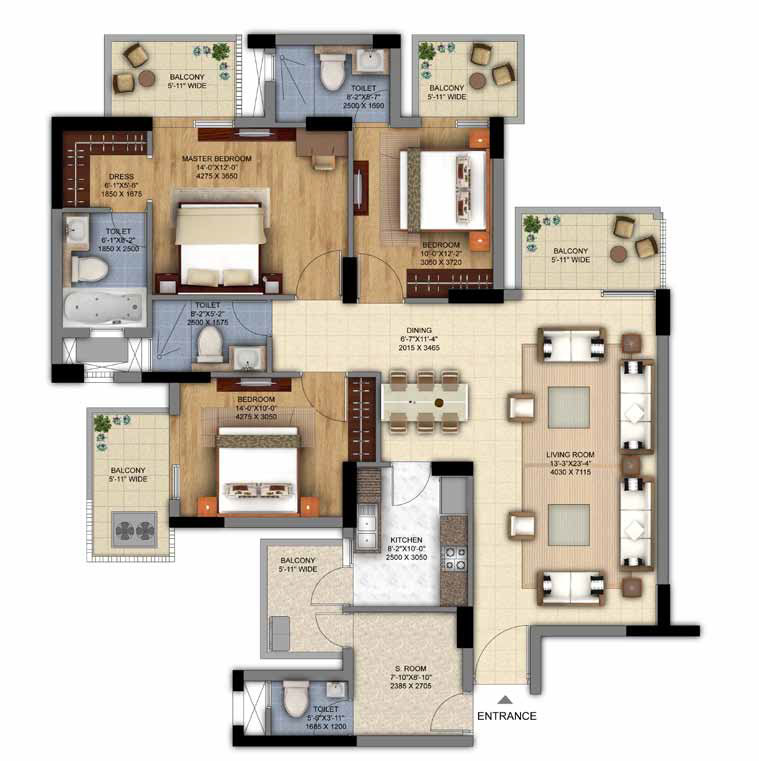 | 3 BHK + S Room | Tower E,N,Q,R,S |